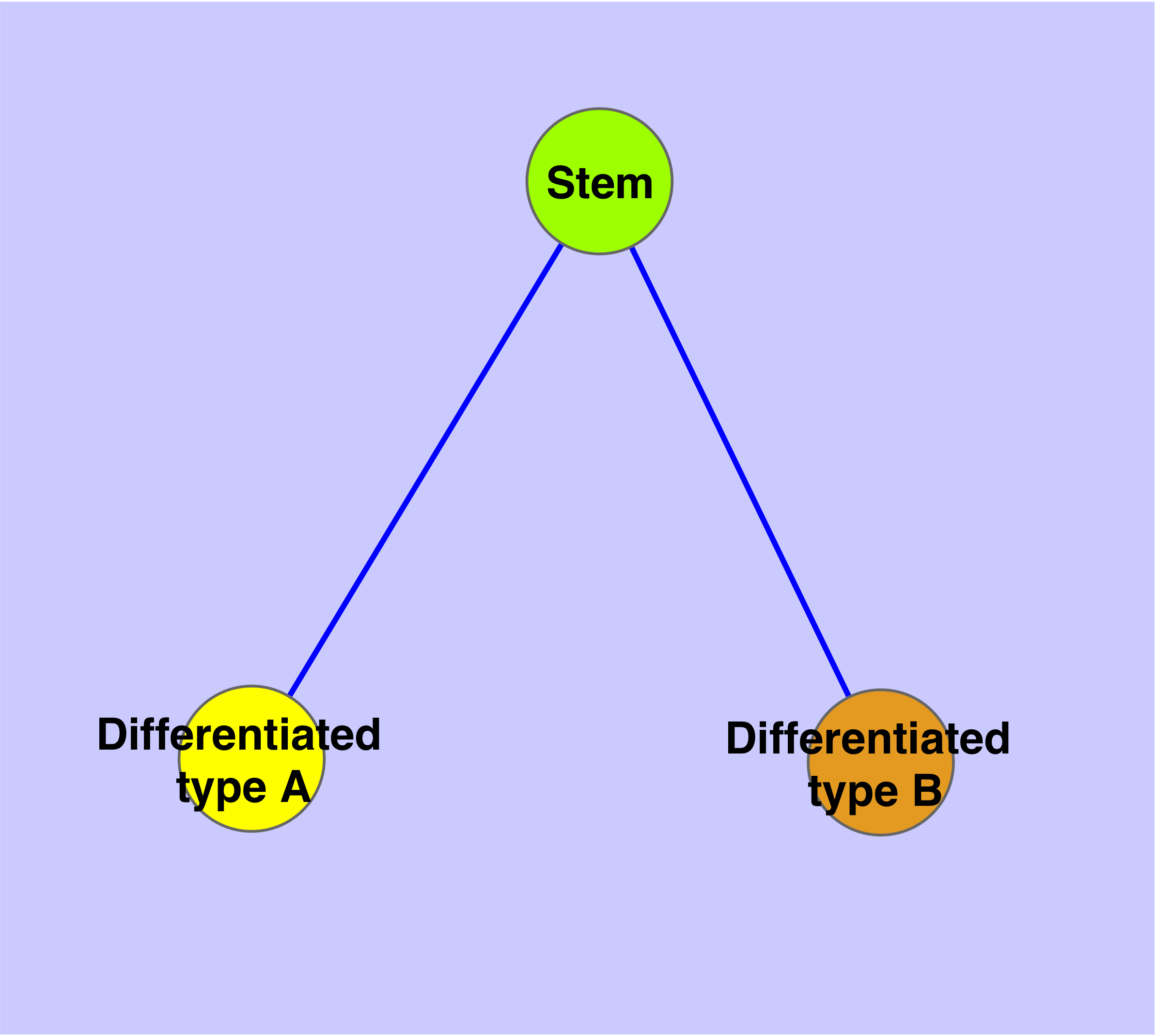 Example differentiation tree. The descendent of a unique stem cell type are two distinct